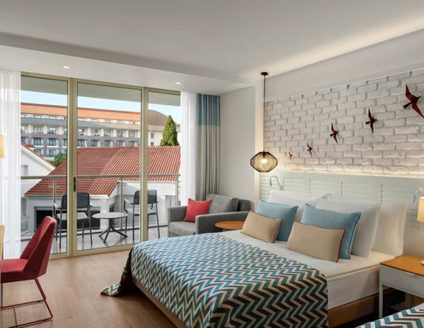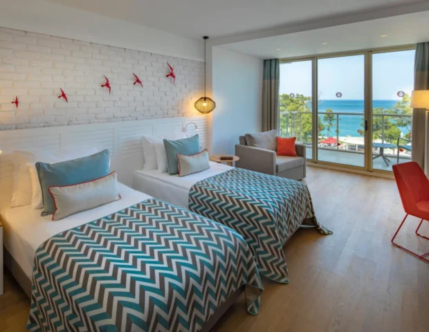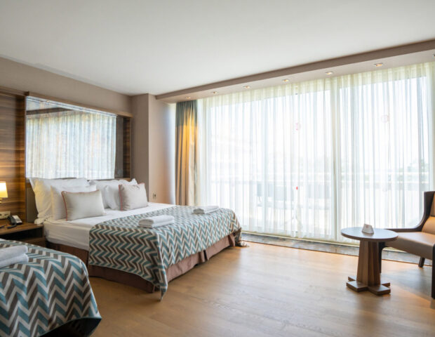 Du kannst zwischen verschiedenen Zimmern und Suiten wählen, die sich in ihrer Größe, Ausstattung und dem Blick aus dem Fenster unterscheiden. Diese Zimmer gibt es als Auswahl: Family Suite, Deluxe Suite mit Jacuzzi, Penthouse Suite, Deluxe-Zimmer mit Meerblick, Familienzimmer mit Kara-Blick, Superior Room, Doppel Premium 4 Zimmer, Barrierefreies Zimmer, Hochzeitszimmer.