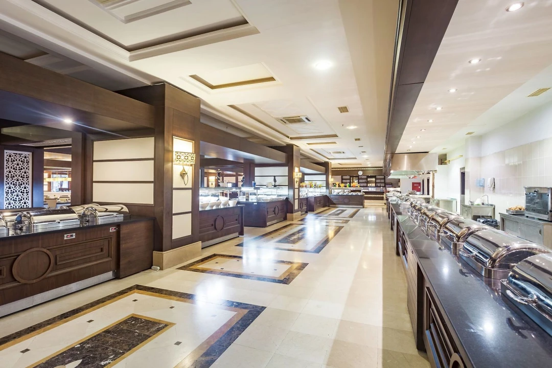 Im Sultan of Side bekommst du eine All-inclusive-Verpflegung, bei der es dir an nichts mangelt. Du kannst zwischen verschiedenen Restaurants, Bars und Snackbars wählen.