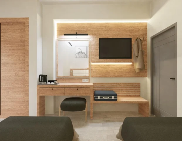 Du kannst zwischen drei Zimmertypen auswählen: einem Standardzimmer für max. 3 Erwachsene, einem Familienzimmer für 2 Erwachsene und 2 Kinder oder einem Familienzimmer für 4 Erwachsene und 1 Kind.